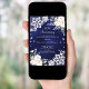 Para um elegante e romântico 60º aniversário de casamento. Um fundo azul marinho, incolor, decorado com flores brancas, rosas, diamantes falsos e rendas brancas. Personalize e adicione seus nomes e detalhes.