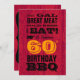 Uma festa amorosa do país de origem aguarda o destinatário deste convite de aniversário. Fazer sessenta anos e sentir a necessidade de celebrar com carne de excelente cerveja gelada e boa comida? Este é o cartão de CHURRASCO para você. Saia da grade e comam uma bola de aniversário!
