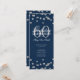 Design de "Programa de Festa de aniversário" elegante com Confetti Glitter em Prata e Marinho com texto personalizado.