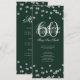 Design de "Programa de Festa de aniversário" elegante com Glitter Confetti em Prata e Verde com texto personalizado.