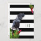 Uma linda Cockatoo Negro Extra grande em uma folha verde tropical sobre um fundo listrado preto e branco. Um convite de aniversário para adultos.
