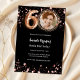 Um convite para fotos moderno e na moda para uma 60ª festa de aniversário. Um fundo preto clássico, decorado com estrelas douradas rosa. Personalize e adicione os detalhes da sua festa.