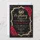 60º convite para comemoração de aniversário. Design preto elegante com ouro e rosas vermelhas brilhantes falsos. Perfeito para uma bolsa mensageifesta de aniversario elegante. Pode ser personalizado em qualquer idade.