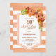 Apricot faux glitter striped floral 60º convite de aniversário.