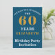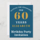 Azul elegante e convite de aniversário 60º ouro. Personalize facilmente o texto deste convite de aniversário usando o modelo fornecido.