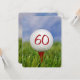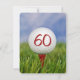 Feche uma bola branca de golfe sobre uma teta vermelha na grama do 60º convite de aniversário.