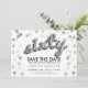 Design de "60ª Festa de aniversário Salvar a Data" elegante com as Letras de Balão e o confete Glitter Silver e o nome personalizado e o texto de detalhes. Imprima sua família e amigos com este na moda e design glamouroso. Fácil de usar e fácil de personalizar. Faça o pedido hoje!