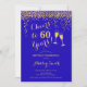 60º Convite de Aniversário. Até 60 Anos! Design elegante em azul real e ouro. Apresenta óculos de champanhe, fonte de script e confetti. Perfeito para na moda 60 festas de aniversário. Personalize com seus próprios detalhes. Pode ser personalizado para mostrar qualquer idade.