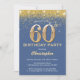 Convites 60.º Aniversário, Azul e Dourada Glitter Confetti