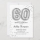 60º convite de aniversário. Design elegante em prata brilhante. O convite apresenta o número prateado 60 balões e a fonte do script. Perfeito para uma comemoração de na moda. Envie-me uma mensagem se precisar de idade personalizada.