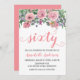 Rustic Floral Blush Pink Watercolor 60º Convite de Aniversário O design apresenta uma cor-de-água russa e cor-de-rosa pincelada e rosas de cinza.