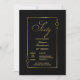 Convites 60.º aniversário preto com festa de quadros Dourad
