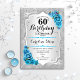 60º Convite de Aniversário. Design floral elegante em prata e azul gelado. Possui riscas prateadas com brilho inverso, fonte de script na moda e confetti rosa de de de turquesa. Perfeito para uma festa de aniversário de vidro.