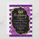 60º Aniversário Convite Elegante design preto de ouro roxo com falso brilho.