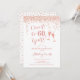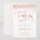 60º Convite de Aniversário. Até 60 Anos! Design elegante em branco e rosa. Apresenta óculos de champanhe, fonte de script e confetti. Perfeito para na moda 60 festas de aniversário. Personalize com seus próprios detalhes. Pode ser personalizado para mostrar qualquer idade.