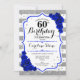 60º Convite de Aniversário. Design elegante em prata brilhante, branco e azul real. Possui forte de script de na moda, listras e rosas azuis. Perfeito para uma bolsa mensageifesta de aniversario elegante. Pode ser personalizado em qualquer idade.
