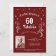 60 e Fabulosa Folhagem Vermelha 60. Aniversário. 60 e texto fabuloso em um roteiro branco com um nome, foto e folhagem branca em um fundo vermelho escuro.