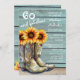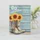 60 E Fabuloso concurso russo de girassol ocidental apresenta um design rústico de botas de cowgirl cheias de girassóis de aquarela. Personalizado editando o texto nas caixas de texto dos seus 60 e 60 convites de festas de aniversários fabulosos. Criado pelo Evco Studio www.zazzle.com/store/evcostudio