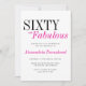 Convites 60 & Fabulous Modern Pink Typography 60th Birthday