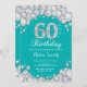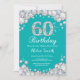 60º Convite de Aniversário. Teal e Silver Rhinestone Diamond Teal Turquoise Aqua Fundo. Convidado Elegante Birthday Bash. Aniversário Adulto. Mulheres Aniversário. Homens Aniversário. Para mais personalização, clique no botão "Personalizar" e use nossa ferramenta de design para modificar este modelo.