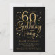 60th birthday party invitation in black and gold. Trendy modern design, perfect for a stylish men's or women's bday celebration. Features script font and confetti. Customize with your own details. Printed Zazzle invitations or instant download digital printable template.