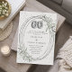 A warm pearl gray colored background. A faux silver looking frame decorated with sage green greenery and faux diamonds. Personalize and add your names, details. Black text.