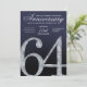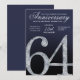 This modern anniversary invitation card features a striking diamond-style number sixty-four set against a deep navy blue background with refined silver accents. The faceted crystal detailing adds contemporary sparkle, while clean lines, smooth gradients, and subtle light textures create a polished, upscale appearance. The modern navy and silver color palette delivers a formal yet stylish feel, making this invitation ideal for hosting an elegant and memorable 64th anniversary celebration.