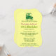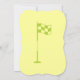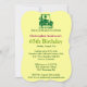 Você pode personalizar todo o texto neste convite de aniversário de 65° golfe. Você pode mudar o texto e o número na frente e usar isso para um aniversário de 50, 60 anos, 70 ou outro. A design apresenta um golfista verde em um carrinho verde
