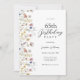 Bonita e feminina, este 65º convite de aniversário inspirado na natureza celebra um aniversário no estilo elegante. Este charmoso design floral de aquarela tem flores silvestres em cores pastéis mistas ao longo da borda esquerda. Todo o texto pode ser personalizado para o seu partido. Você pode editar a idade para qualquer idade! Este convite está disponível como download digital impresso e sem papel.