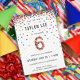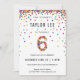 6 de aniversário no arco-íris / convites de aniversário 6! Apresentando os detalhes da festa do seu filho e um "6" em confetti, com círculos de confete coloridos em arco-íris divertidos borrifando do topo desses convites bonitinhos