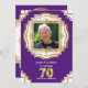 Convites 70ª moldura de foto roxa dourada elegante branca s