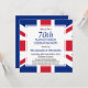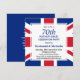 Convite personalizável e elegante de celebração patriótica de 70 anos em platina Union Jack mostrando a UNION JACK do Reino Unido na frente e fundo azul simples no verso. Todo o texto é PERSONALIZÁVEL, para que possa adicionar os seus próprios detalhes, por exemplo, Festa de Rua do Jubileu de Platina, Aniversário de Casamento, Aniversário de Data Marcante, Aniversário de Organização, etc. Há informações adicionais de espaço reservado no verso, que podem ser substituídas por informações sobre o seu evento especial. Ideal para qualquer celebração com tema BRITÂNICO. Também é adequado para outros aniversários, datas comemorativas ou marcos importantes. Basta alterar o ano e os detalhes após clicar em Personalizar Mais. Este convite britânico patriótico pode ser usado para eventos privados ou públicos, ou por embaixadas e centros culturais, etc., para celebrações nacionais. Parte da Coleção do Reino Unido por Berean Designs. Outras versões e bande