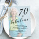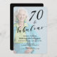 70 and Fabulous Seventy Birthday Modern Script Invitation, classic script design 70th birthday invitation you can personalize and send out for your birthday party celebration. The words "70 and Fabulous" are set using popular typography for a clean minimal lovely look. Upload your favorite photo of the birthday celebrant, the opacity can be changed using the edit menu. The coloring in the photo can accent your chosen decor.