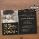Celebre um 70 de aniversário para ele, com este convite de festas preto e dourado com uma fotografia e um design de tipografia retrô com 70 ANOS NO FAZER, que incorpora o ano de nascimento no design com uma borda de luzes de cordas. ASSISTÊNCIA: para obter ajuda com a modificação ou personalização do design, transferir o design para outro produto ou, se você quiser coordenar itens, entre em contato com o designer ANTES DE ENCOMENDAR através da guia MENSAGEM de Bate-papo Zazzle ou envie um email para makeitaboutyoustore@gmail.com.