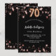 Um fundo preto clássico, decorado com estrelas douradas rosa. Personalize e adicione um nome e detalhes da parte. O número é escrito com um script de estilo de balão.