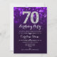 Convite de aniversário de 70. Elegante design branco roxo com prata brilhante. Aniversário adulto. Apresenta diamantes e fontes de script. Convidado para homens ou mulheres no dia. Perfeito para uma festa de aniversário na moda. Envie-me uma mensagem se precisar de mais personalização.