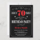 70 Birthday Convite Vermelho e Negro Tipografia. Chalkboard. Fundo preto e branco. Aniversário Adulto. Homens ou Mulheres Aniversário. Meninos Meninos ou Meninas Meninas Meninas Adolescentes Convidam. 13 15 16º 18º 20 21rua 30 40º 50º 60º 80 de 70 100º. Qualquer Idade.