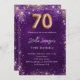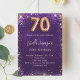 Celebre um 70 especial de aniversário com este convite maravilhoso, perfeito para uma festa elegante. O fundo roxo profundo apresenta uma bela textura irregular, acentuada por rosa dourado e ouro toque de brilho. O nome é escrito em um texto delicado, escrito à mão, acrescentando um toque personalizado e sofisticado. Personalize o convite adicionando o nome e todos os detalhes importantes da parte. Este design luxuoso dá o tom para uma celebração inesquecível.