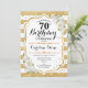 Convite de aniversário de 70. Design clássico com restos de ouro, rosas brancas e confete. Apresenta um script de na moda. Perfeito para uma bolsa mensageifesta de aniversario elegante. Pode ser personalizado em qualquer idade.
