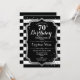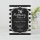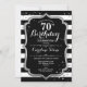 Convite de aniversário de 70. Design preto elegante com falso prata. Listras pretas e brancas com diamantes brilhantes confetti. Perfeito para uma bolsa mensageifesta de aniversario elegante.