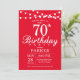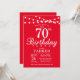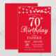 70 Birthday Invitation com luzes de cordas. Fundo Vermelho. 13 15 16º 18º 20 21 rua 30 40º 50º 80 de 60º 70 de 100º, qualquer idade.