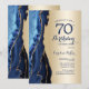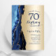 convite de aniversário 70 azul e dourado agate. Elegante design moderno com cor azul-real de água agate marble geode fundo, fonte falsa de ouro brilhante e script de tipografia. Trendy convida o cartão perfeito para uma comemoração de dia das mulheres na moda. Impressos convites Zazzle ou modelo de impressão digital instantânea para download.