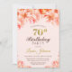 Convite de aniversário de 70 floral, cor-de-rosa e ouro.