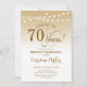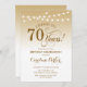 70 Aniversário Convite Elegante design branco de ouro com luzes de cordas de fadas e letra de script. Saúde para 70 anos! Pode ser personalizado em qualquer idade! Envie-me uma mensagem se precisar de mais personalização.