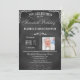 Este 70º convite para fotos de festa de aniversário da tipografia do quadro é moderno, moderno e chique. Feito em tipografia tradicional de quadro negro e branco com várias fontes, este convite para festa de aniversário de chic é uma forma única de convidar família e amigos para uma celebração especial de aniversário. As placas RSVP também estão disponíveis.