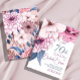 Grandes florais em cor rosa e azul anunciam um convite de aniversário surpresa. Pinks e blues são as principais cores neste moderno convite personalizado. Altere facilmente as informações para o seu próprio convite pessoal.