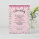 Pingindo gelo cor-de-rosa com aspersores doces coloridos para um convite à festa de aniversário 70. Todo texto é editável. A cor de fundo pode ser alterada.