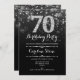 Convite de aniversário de 70. Design branco preto elegante com prata brilhante falso. Aniversário adulto. Apresenta diamantes e fontes de script. Convidado para homens ou mulheres no dia. Perfeito para uma festa de aniversário na moda. Envie-me uma mensagem se precisar de mais personalização.