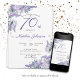 70 Aniversário Púrpura Floral Roxo Convite Botânico. Um delicado e feminino convite de aniversário floral e botânico roxo. Ele apresenta lindas flores de wisteria com uma dica de classe vintage! O designer está sempre pronto para ajudar, contate-a se precisar de ajuda com este design, clicando no botão de mensagem azul abaixo!