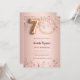 Um convite para fotos moderno e na moda para uma festa de aniversário 70. Um fundo rosa de gradiente dourado, decorado com estrelas. Personalize e adicione os detalhes da sua festa.